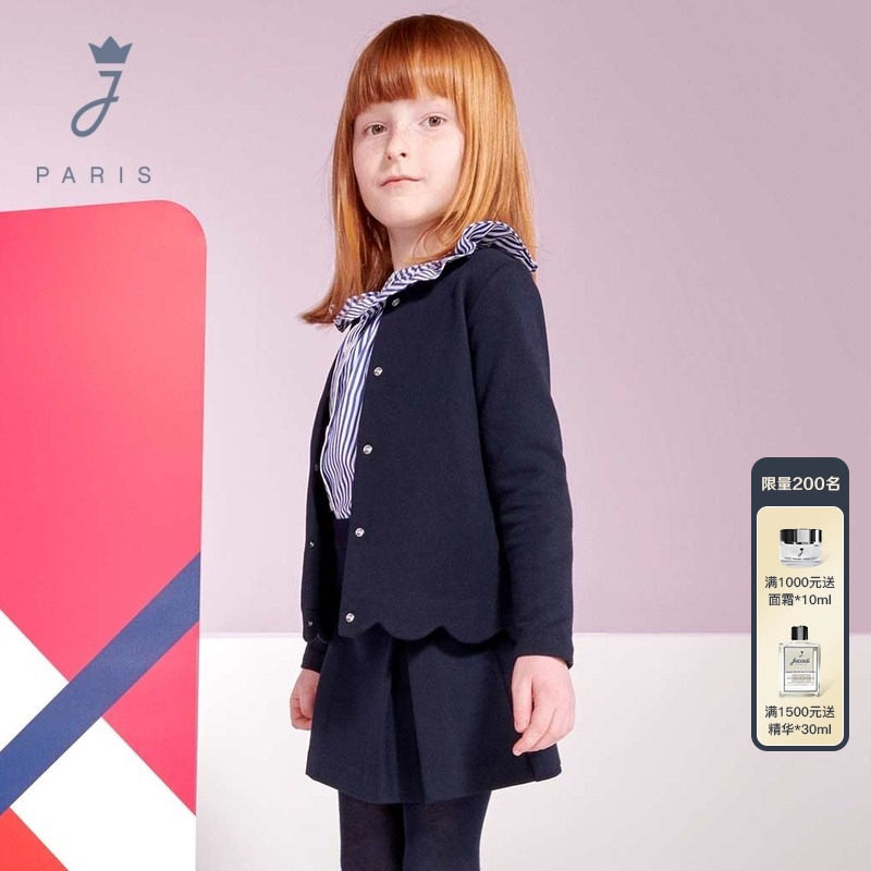 Jacadi亚卡迪女大童春春款法式典雅开衫外套女童针织上衣2027152
