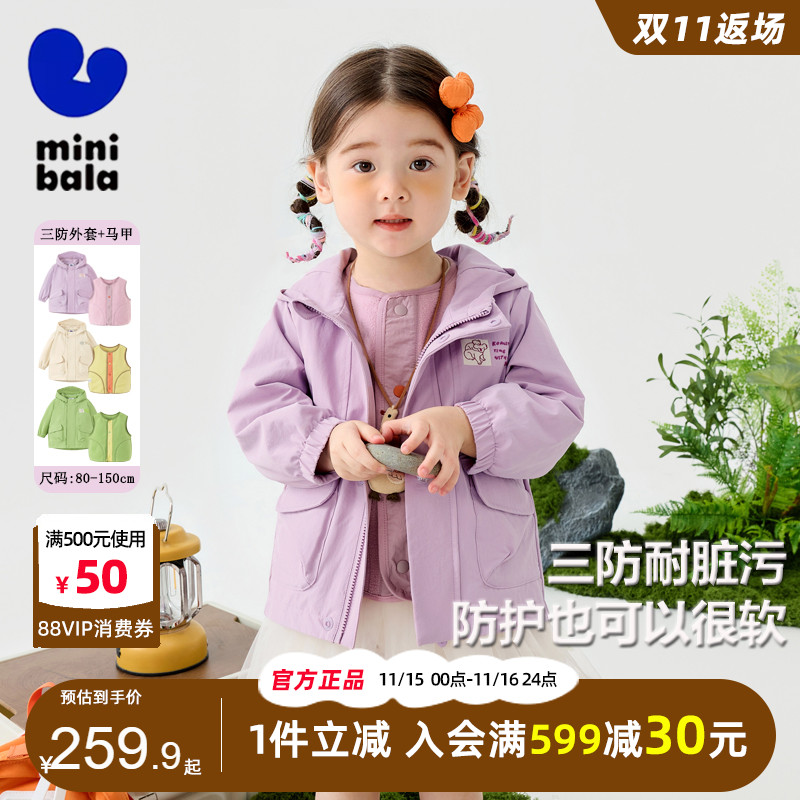 迷你巴拉巴拉女童三防外套2025春款儿童小软皮连帽两件套保暖夹克