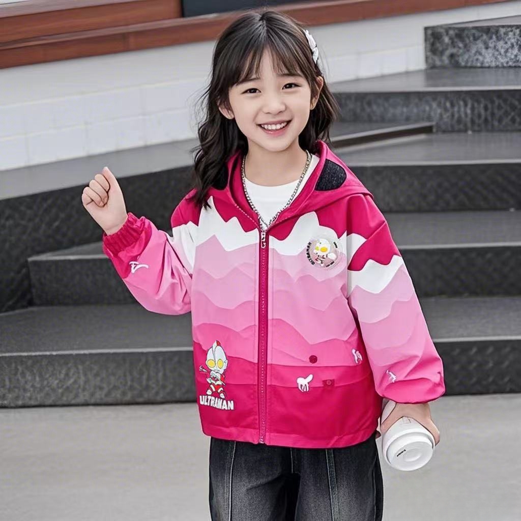 女童奥特曼外套连帽带眼镜儿童春款上衣洋气亮灯2025新款冲锋衣服