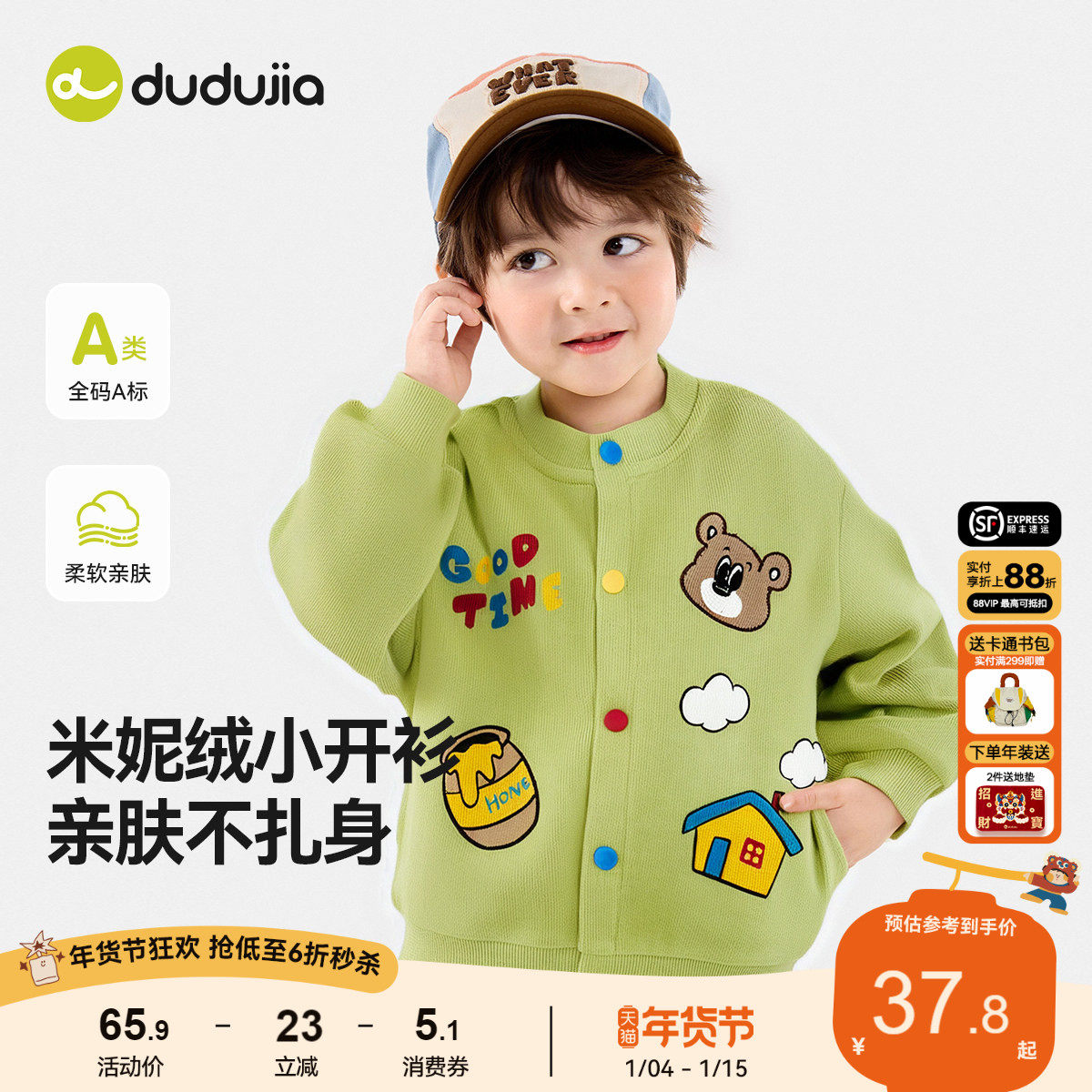 【春款上新】嘟嘟家儿童外套男童连帽上衣女童春季新款宝宝软壳衣