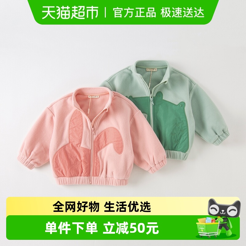 婧麒宝宝摇粒绒外套春季婴儿保暖上衣秋装男女童春款儿童加绒衣服