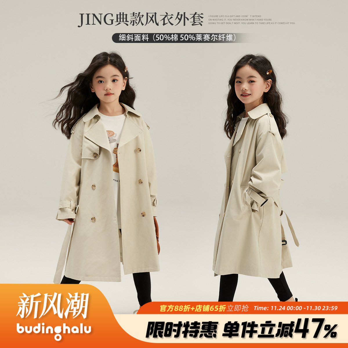 布丁哈鲁春装女童外套春秋款2025春秋新款儿童洋气中长款风衣春款