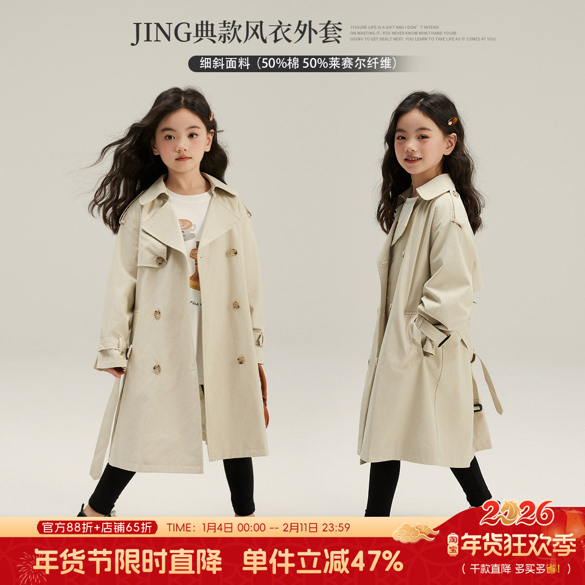 布丁哈鲁春装女童外套春秋款2026春秋新款儿童洋气中长款风衣春款