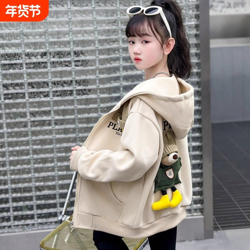 新年女童外套春款2026新款儿童洋气学生春秋季中大童连帽时髦时尚