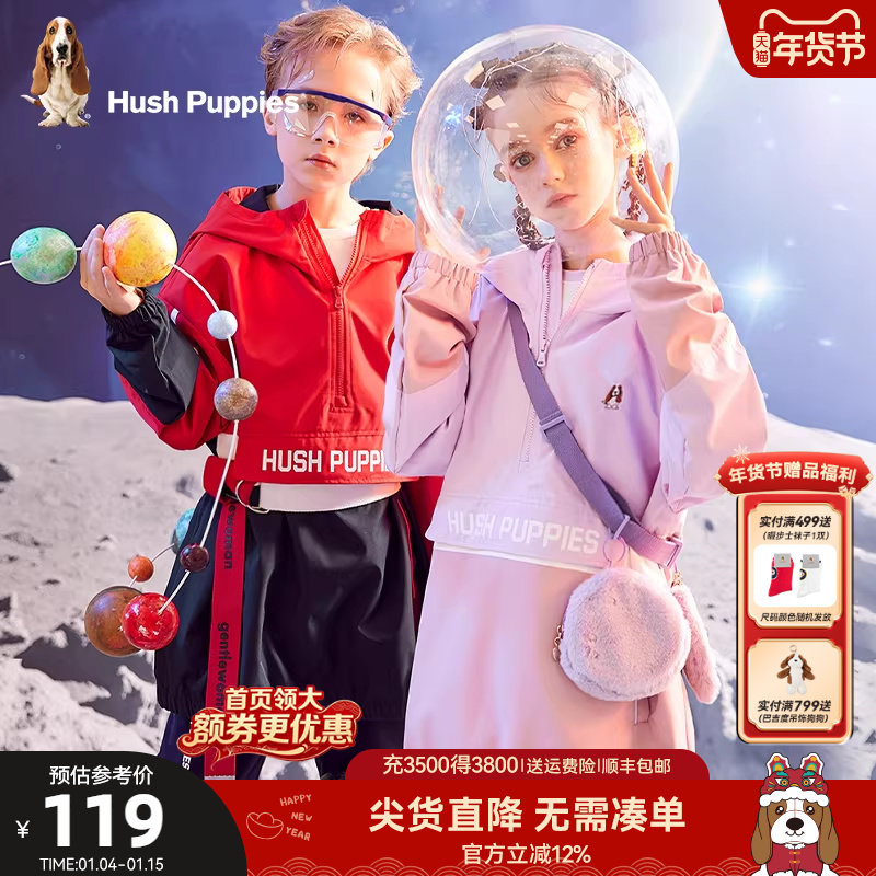 暇步士童装儿童夹克春款男大童户外休闲撞色外套女童连帽套头上衣
