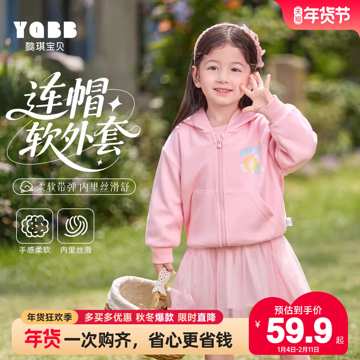 女童外套春春款小女孩甜美春装儿童新款连帽开衫春天宝宝春季衣服