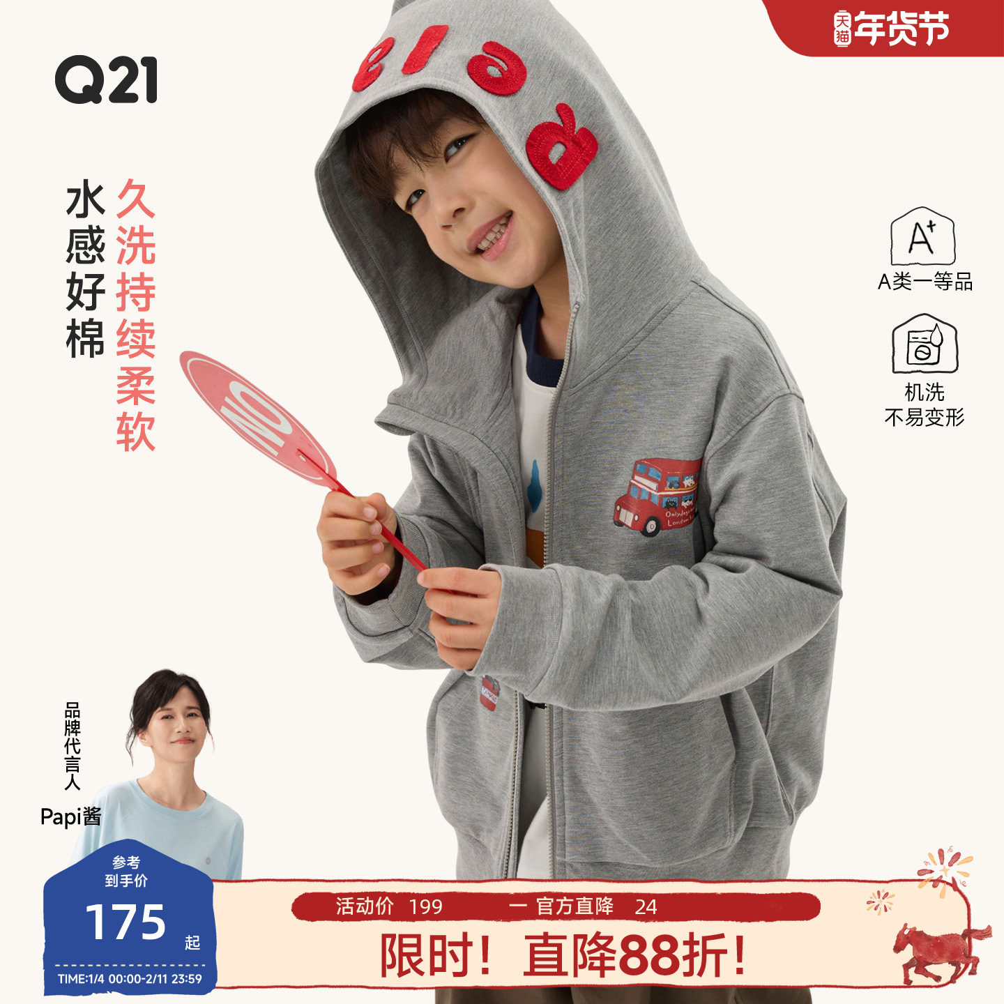 Q21小毛圈儿童外套连帽男女童春款拉链上衣棉感吸湿透气水润亲肤