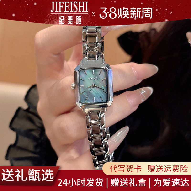 【女神节礼物】纪斐施小方糖手表女款钢带小众轻奢腕表礼盒送女友