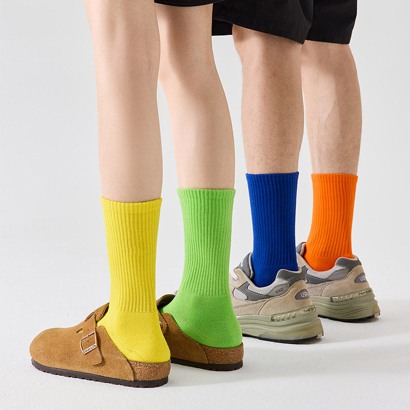 秋冬男士加厚双针中筒棉袜吸汗保暖不臭脚中腰男袜子纯色精梳棉袜