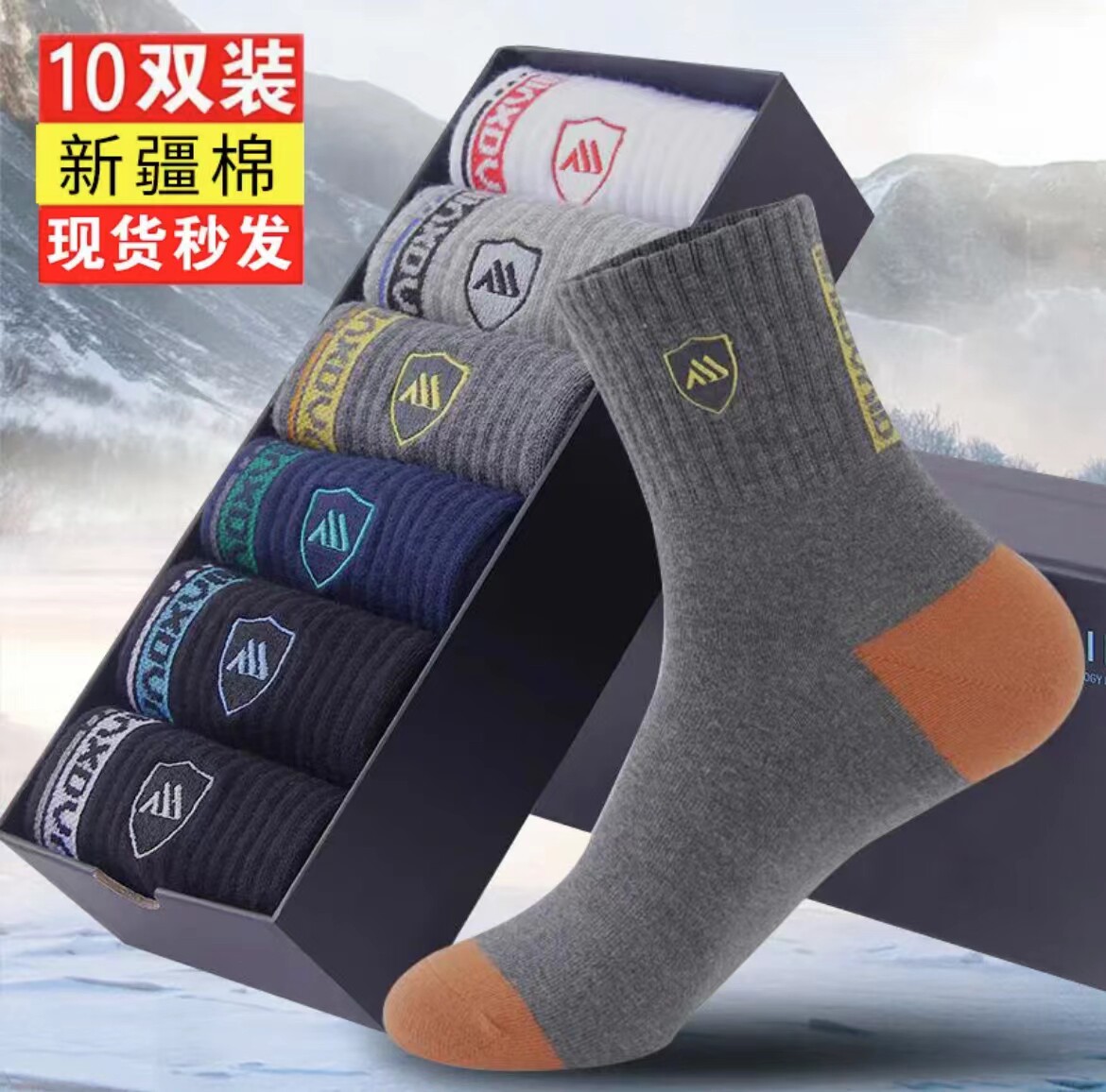 袜子男中筒袜秋冬季100%纯棉纱线防臭吸汗新疆棉男袜加厚男士长袜