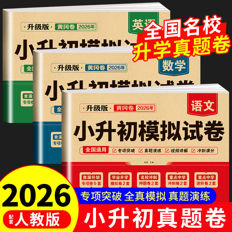 2026年小升初真题卷语文数学英语黄冈卷人教版小学毕业升学总复习资料六年级下册试卷测试卷全套练习册模拟期末专项训练书卷子