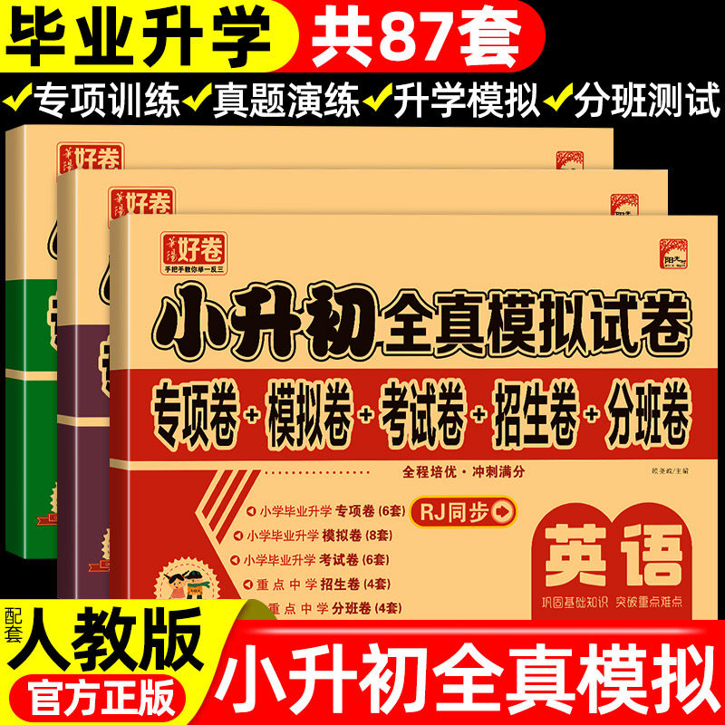 2025年小升初模拟试卷真题卷必刷题人教版语文数学英语小学毕业总复习资料六年级下册试卷分班测试卷子全套名校冲刺练习册