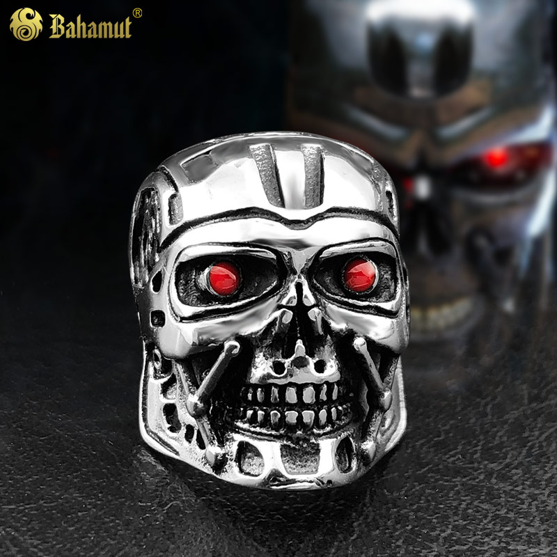 T800终结者戒指男潮流个性骷髅指环男人朋克钛钢饰品赛博朋克配饰