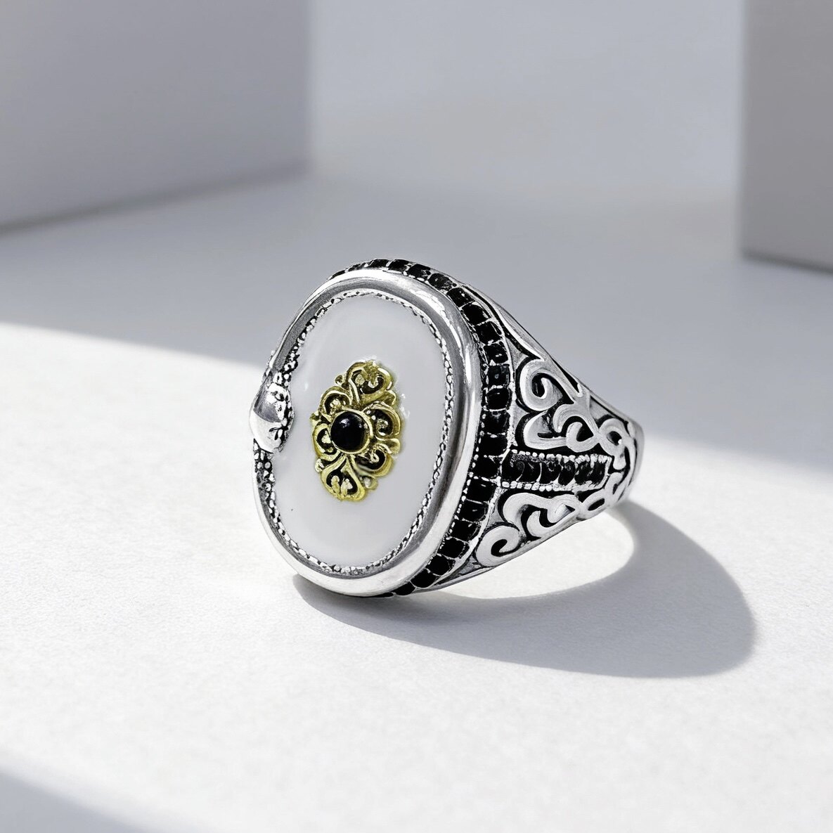 欧美复古男人的白宝石蛇夸张戒指 复古分色真珍珠母贝壳镶钻指环