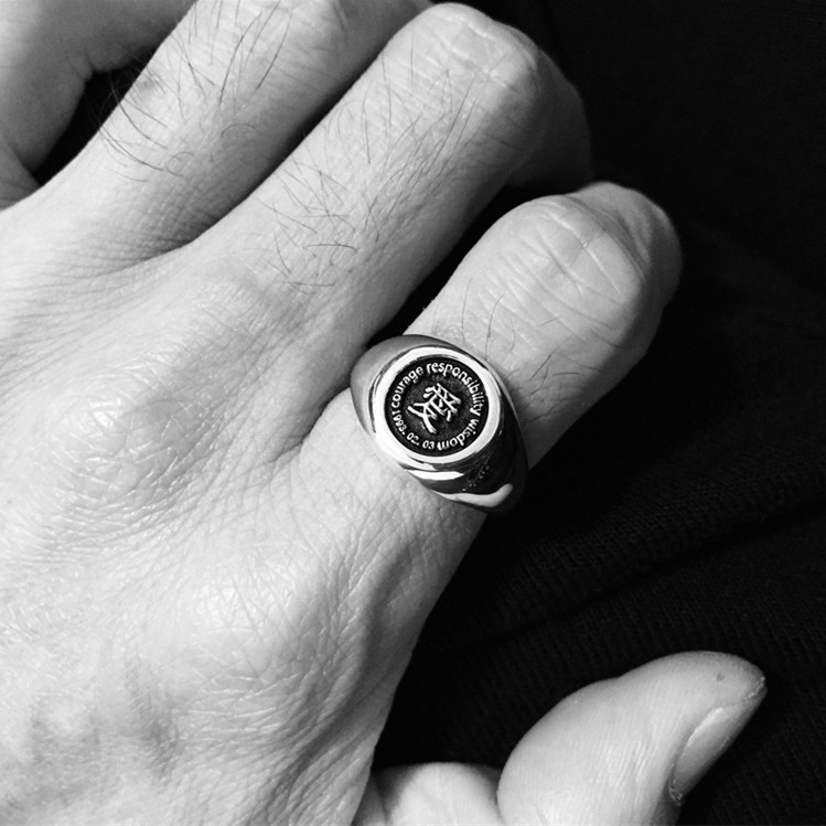 S925纯银男士戒指霸气男生朋克刻logo印章欧美成熟男人款手工定制