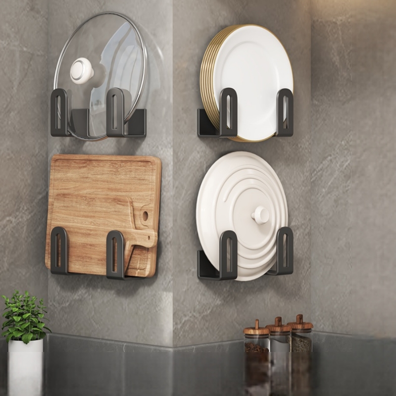 加厚放锅盖架子免打孔壁挂厨房置物架枪灰多功能砧板菜板收纳挂钩