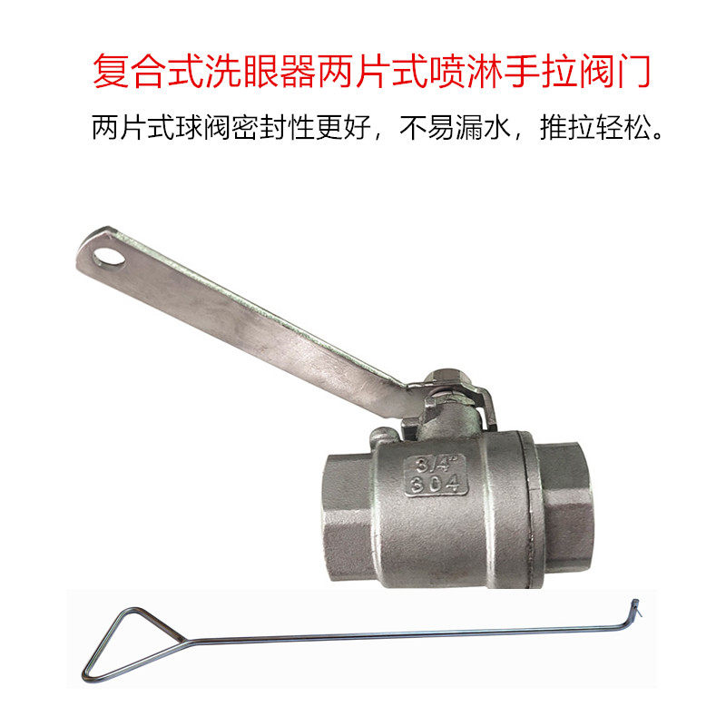 洗眼器配件304不锈钢淋浴阀门洗眼器冲淋阀门淋浴两片式手拉开关