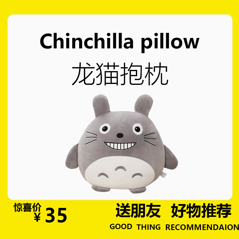 可爱龙猫毛绒玩具抱枕娃娃超软床上睡觉羽绒棉公仔枕头生日送女孩