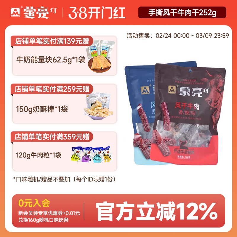 蒙亮内蒙古手撕风干牛肉干252g特产即食香辣牛肉真空独立袋装