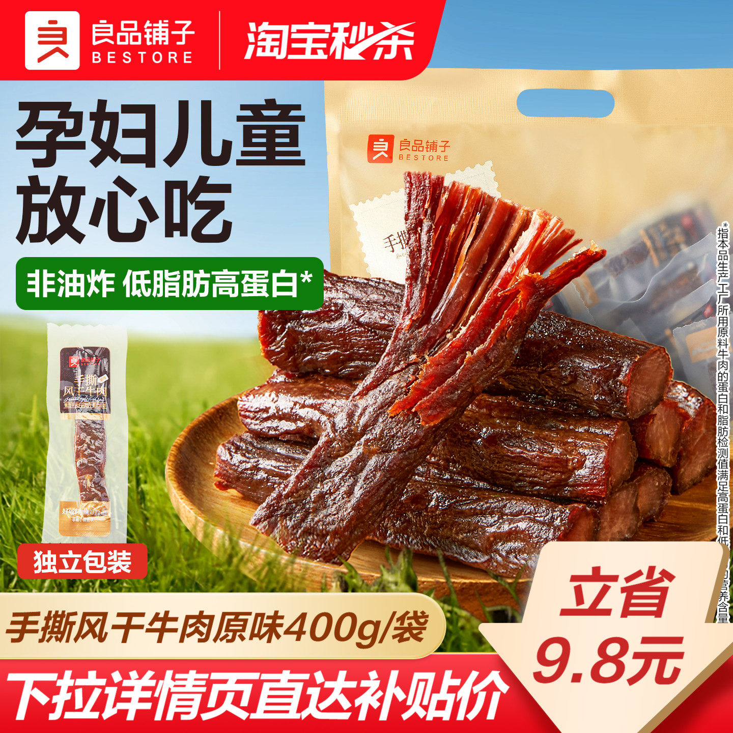 良品铺子手撕风干牛肉干条孕妇儿童办公室零食解馋熟食小包装400g
