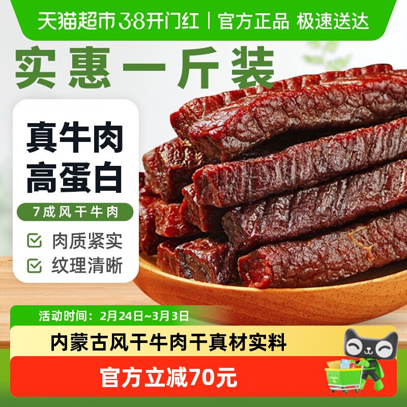 豁尔臣七成干手撕风干牛肉干五香内蒙古特产清真健身熟食孕妇零食