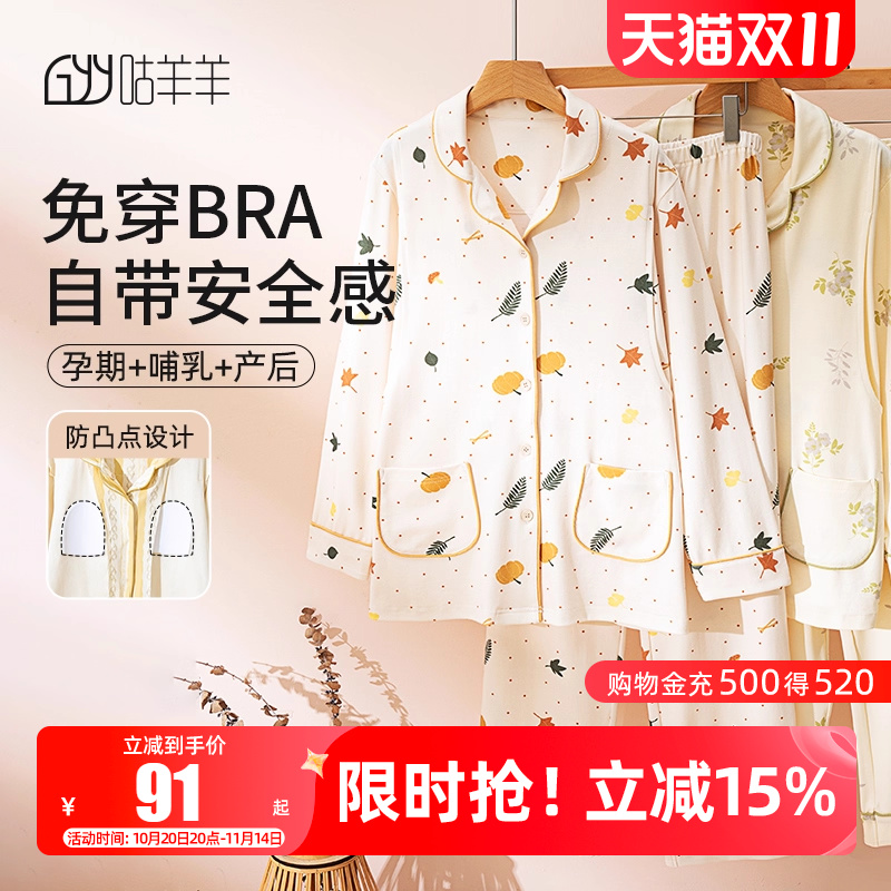 [透气莫代尔!送胸垫]秋季孕妇睡产后喂奶怀孕哺乳衣家居服套装