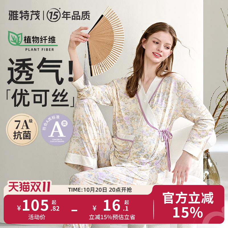 [很柔软!送胸垫]优可丝月子服夏秋孕妇睡衣产后喂奶怀孕哺乳衣