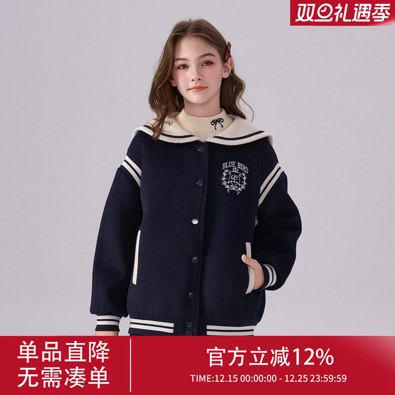 女童棒球服外套2025新款儿童洋气呢子童装女大童毛呢大衣短款冬装