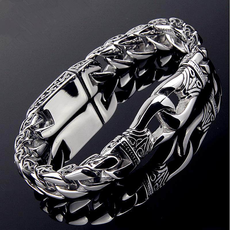 SAZ 嘻哈hiphop潮男粗款霸气手链痞帅美式钛钢不掉色手饰银色手环