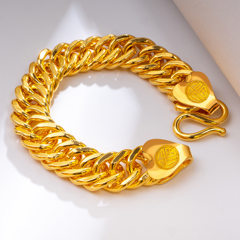 金包银古巴手链男999足黄包金马鞭链实心首饰老板链宽版霸气潮男