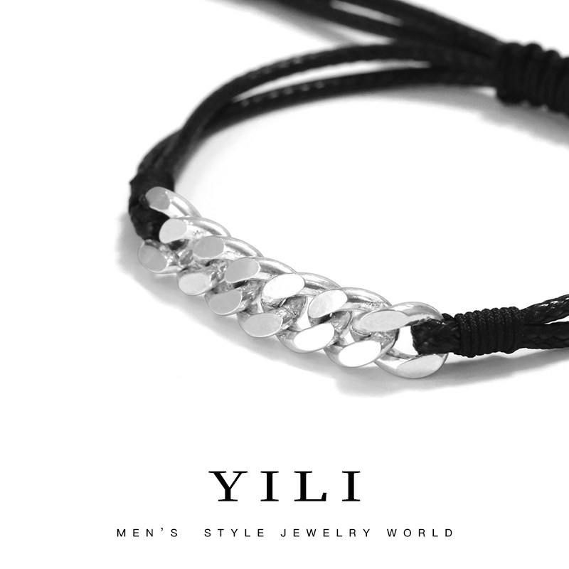 纯银潮男古巴链手绳男百搭个性小众简约925银可调节手绳手链手串
