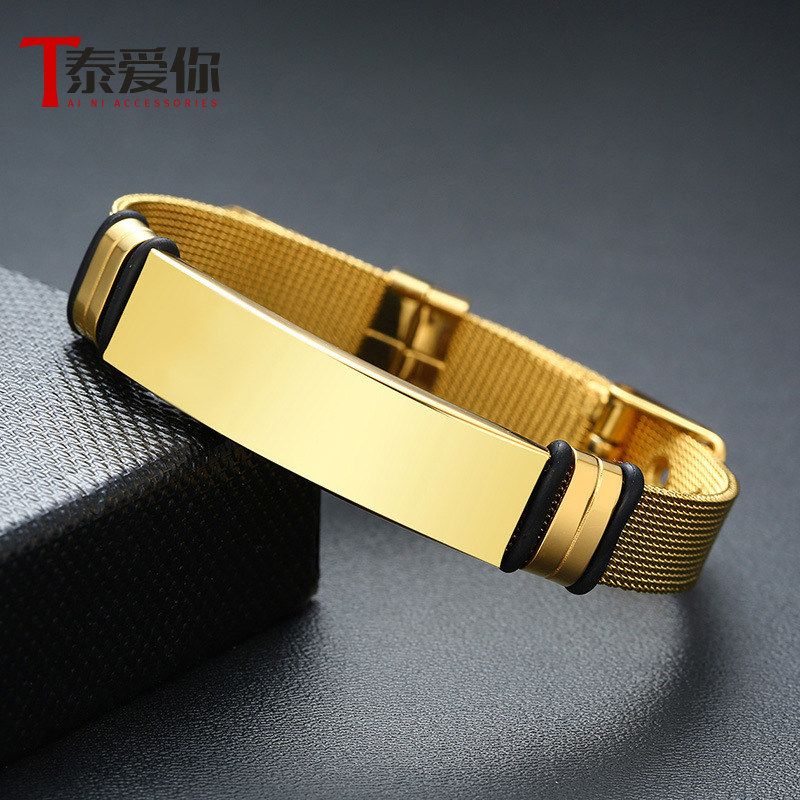 飒雅男士手链古巴钛钢嘻哈欧美潮男简约美式个性时尚亮面手镯男款