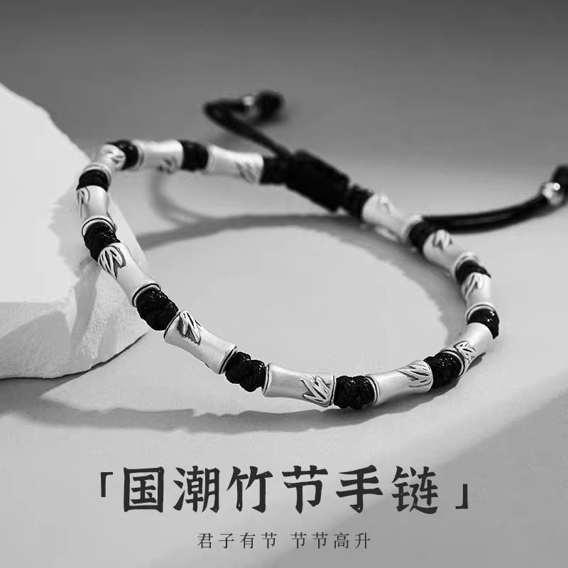925银竹节手链男高级感新中式上岸手工编织黑手绳潮男生日礼物
