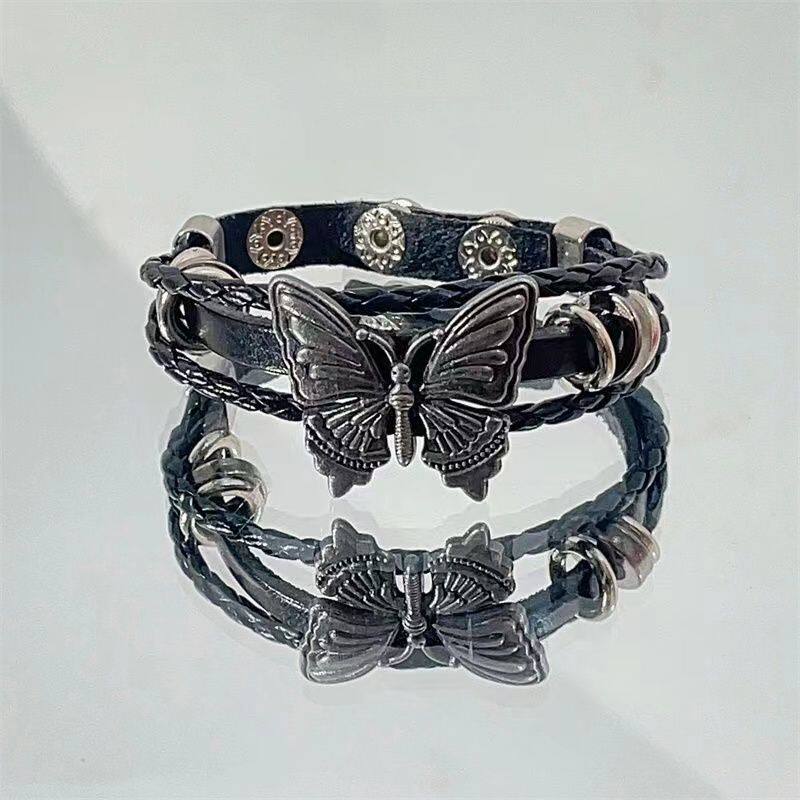 韩国ins蝴蝶手链女复古暗黑潮男嘻哈编织手绳手链ins小众设计欧美