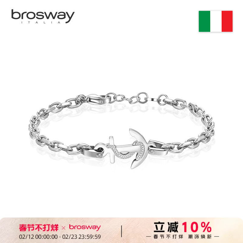 brosway欧美时尚PORTO系列潮男霸气船锚简约潮钛钢手链男个性小众