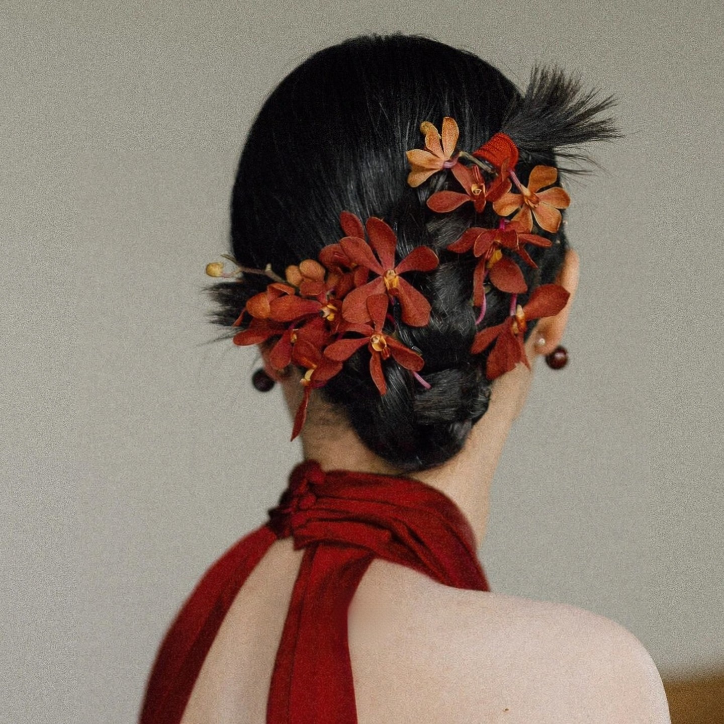 新中式复古红蕙兰花发夹高级感侧边夹新娘头饰国风盘发敬酒服发饰