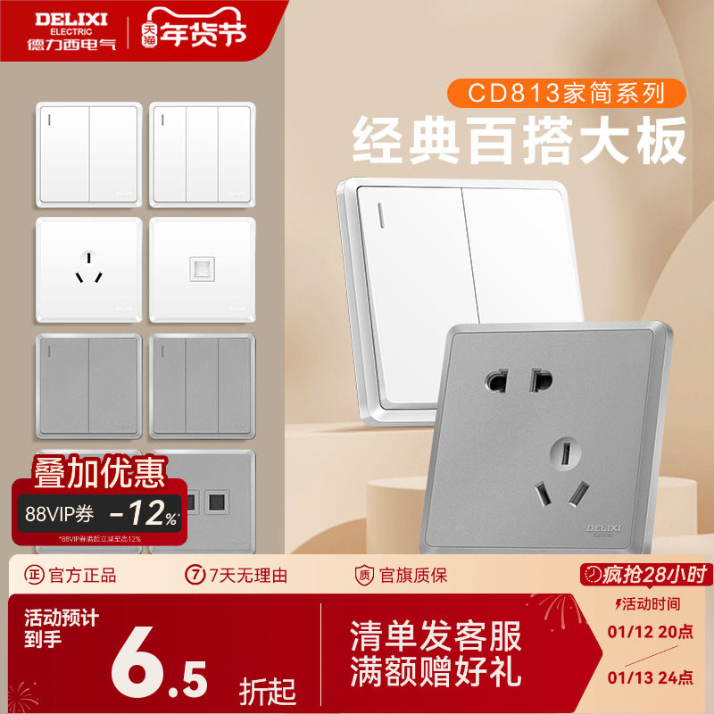 德力西开关插座官方店面板暗装墙壁开关五孔多孔电源插座CD213金