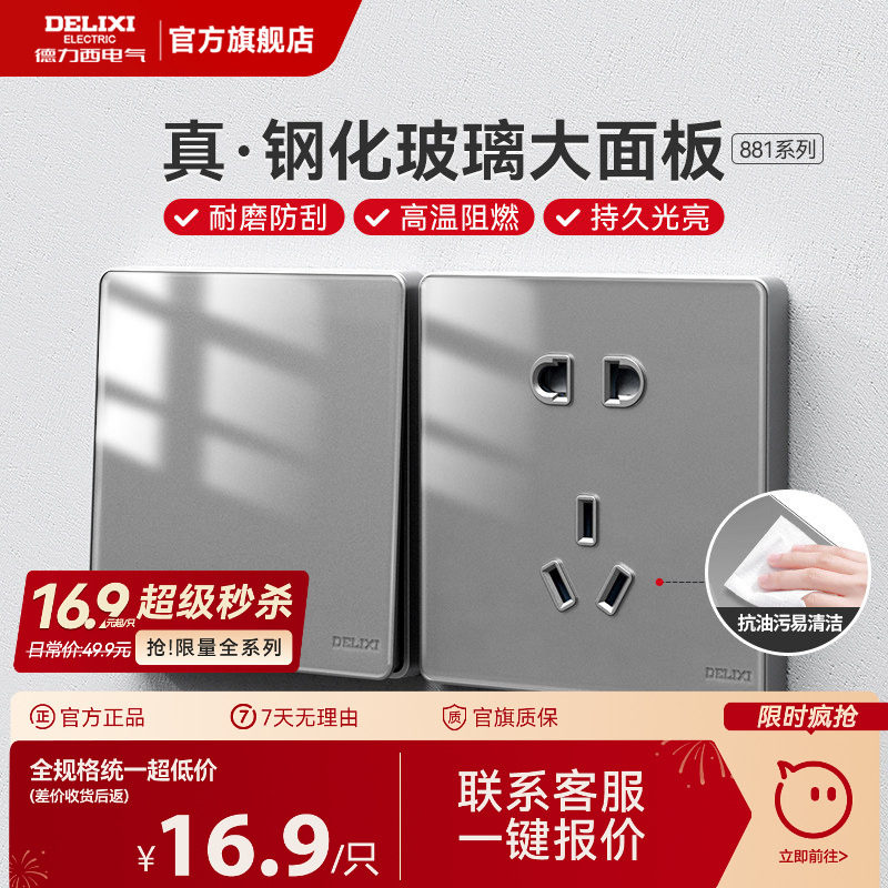 德力西开关插座面板官方旗舰店全屋定制套餐正品国补墙壁五孔灰色