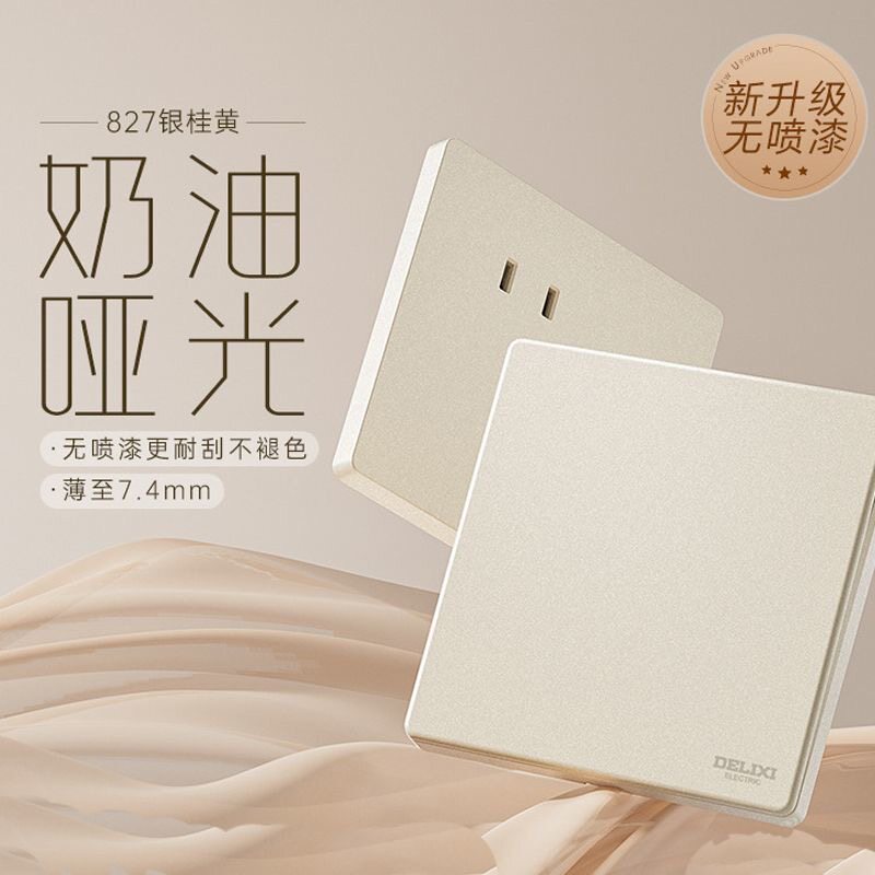 德力西官方旗舰店827奶油风哑光开关五孔插座空调16A面板银桂黄