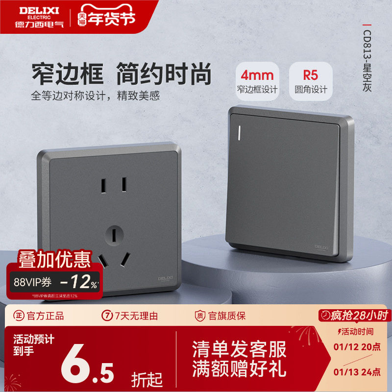 德力西开关插座面板星空灰现代极简风太空漫步官方旗舰店家用暗装