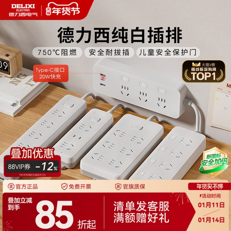 德力西官方插座插排插线板总开关接线板拖线板多功能排插插板宿舍