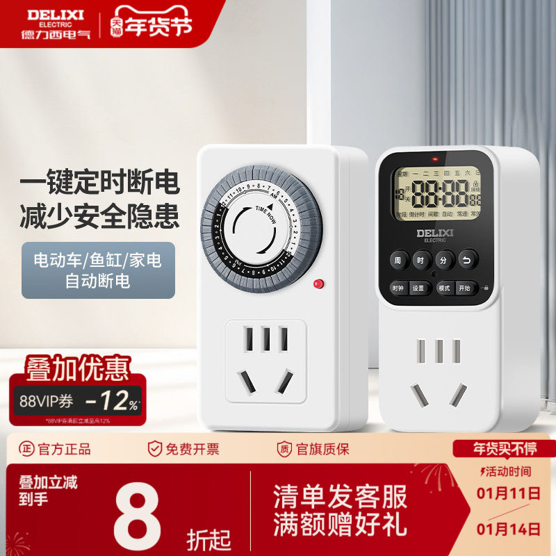 德力西官方定时插座自动断电保护器电源定时开关计时器拖线板充电