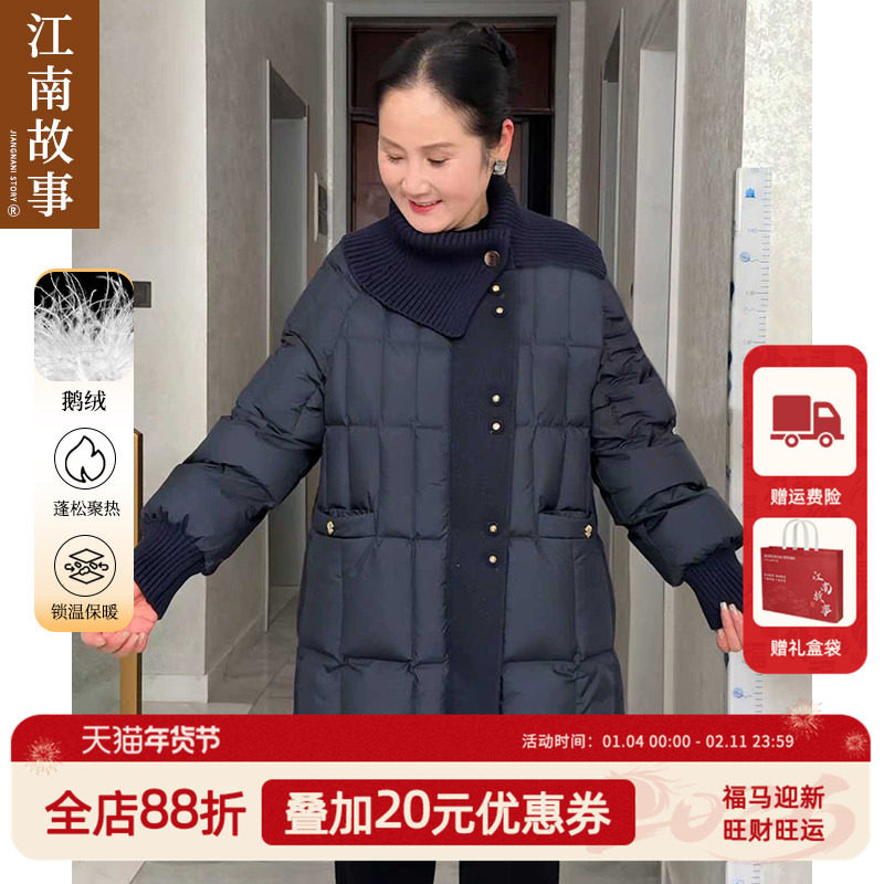 【江南故事】时尚妈妈装冬季中长款外套女加厚保暖针织翻领羽绒服