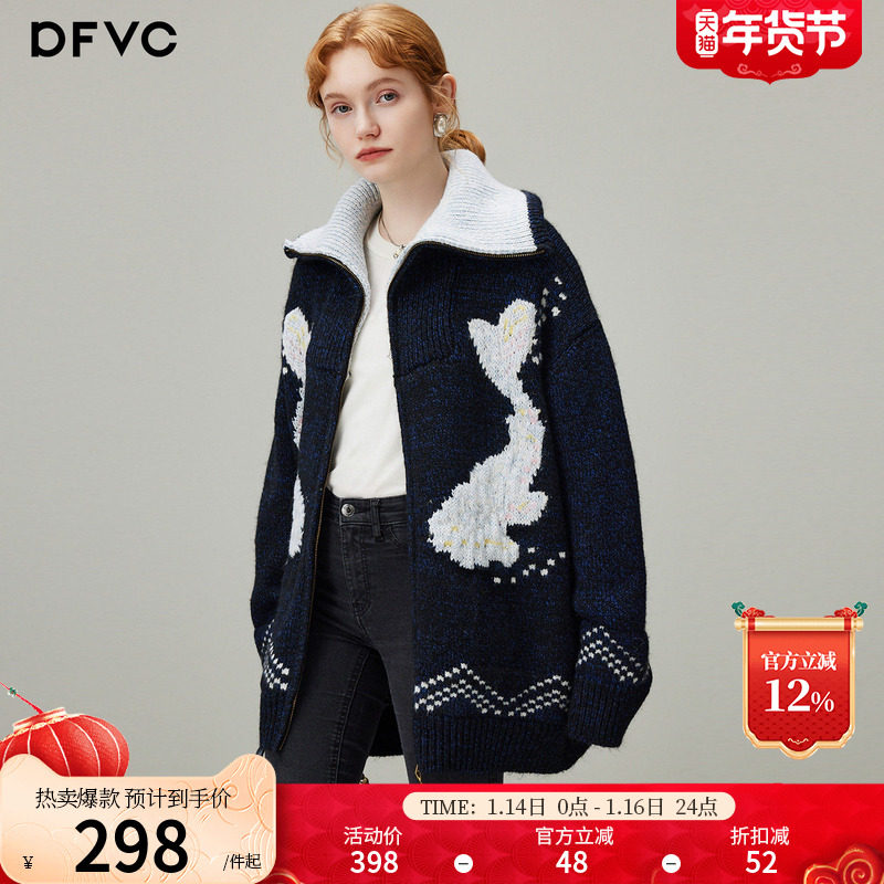 dfvc慵懒风提花针织开衫女2025年冬季新款宽松中长款加厚毛衣外套