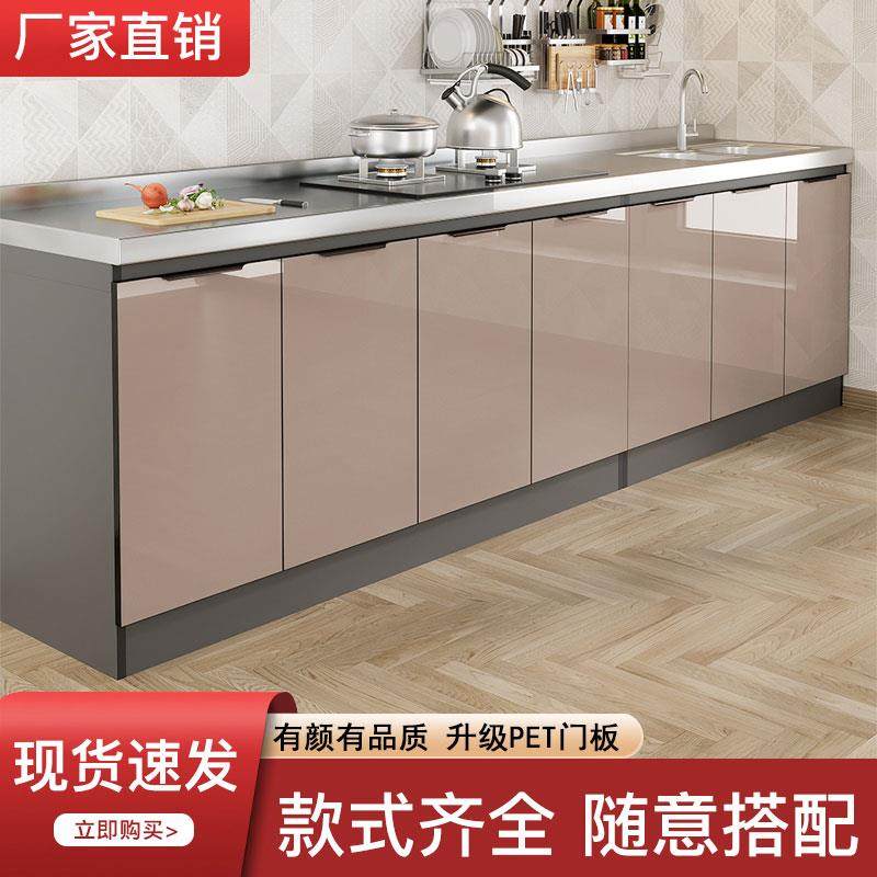 厨房整体橱柜家用简易灶台柜一体PET不锈钢整体农村租房?具车子水