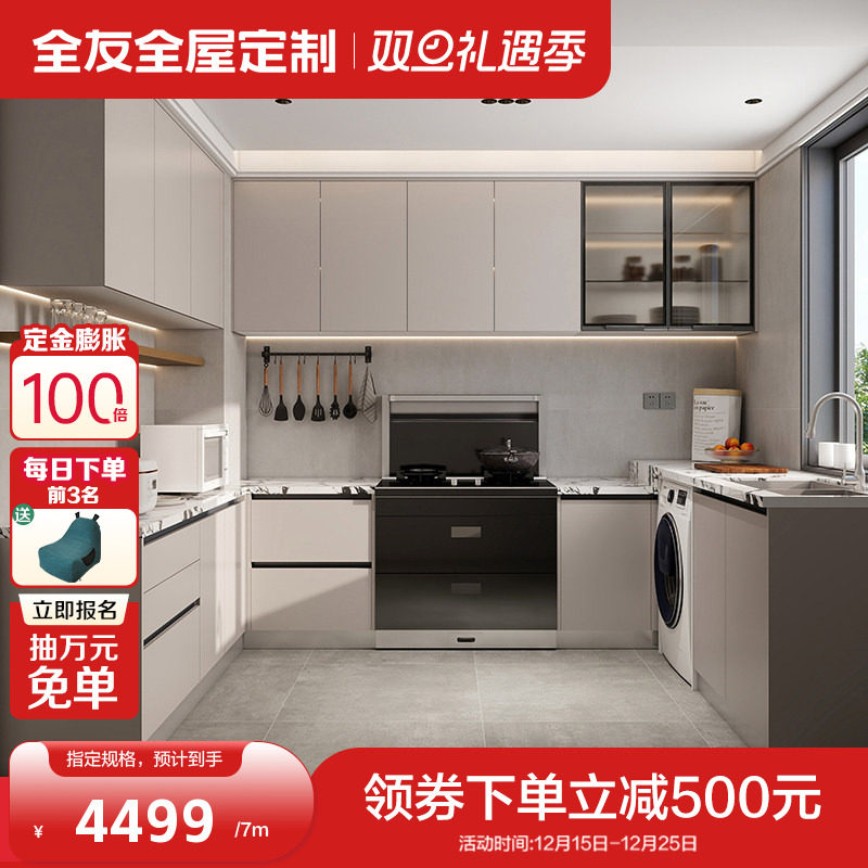 全友全屋定制橱柜厨房整体橱柜灶台一体靠墙柜子厨柜吊柜套餐定做