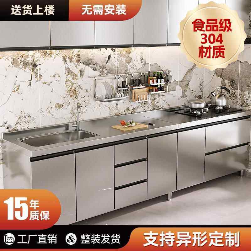 304整体不锈钢厨房整体橱柜家用灶台一体农村厨房收纳碗盘柜家用