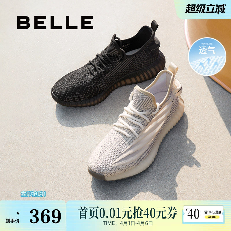 百丽男鞋男士飞织网面运动鞋夏季新透气时尚休闲鞋椰子鞋A1064BM3