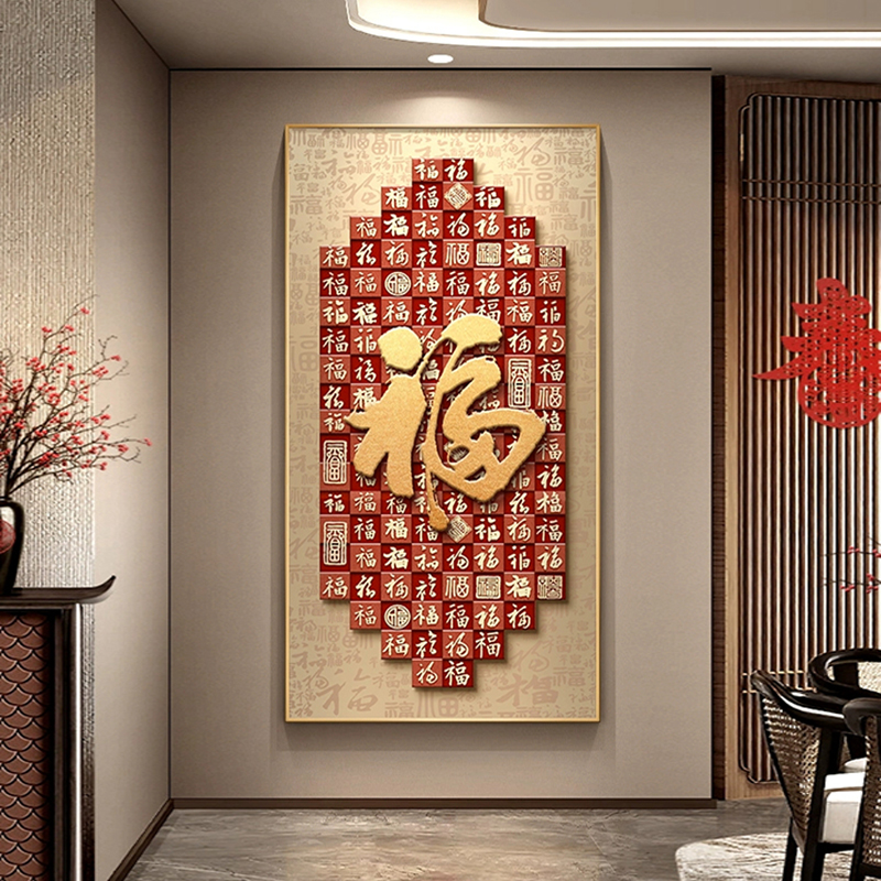 福字入户玄关装饰画大气竖版走廊过道挂画现代新中式红色福字壁画
