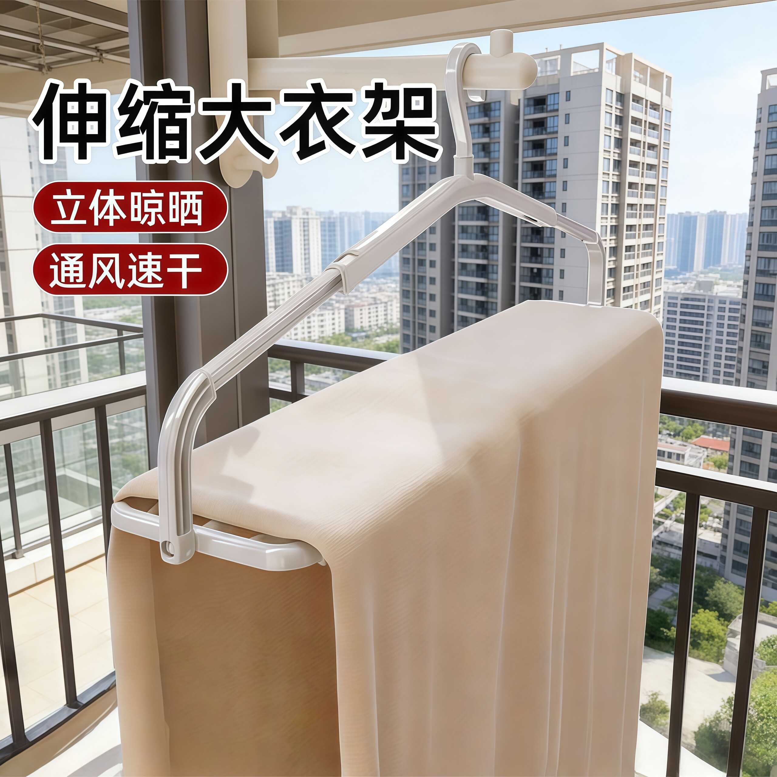 可伸缩大衣架晒被子神器阳台晾晒被单床单专用防风晾衣架立体速干